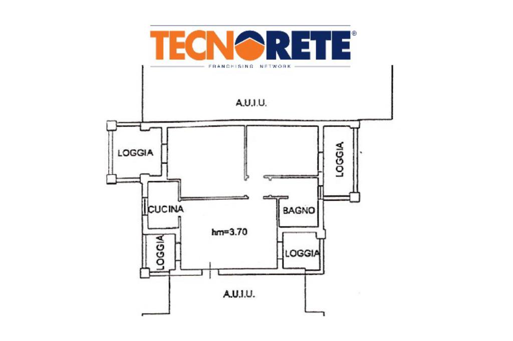 L'ingresso è diretto nel soggiorno reso luminoso grazie a due portafinestre che conducono a due loggiette speculari. Il cucinotto, separato, è dotato di finestra.