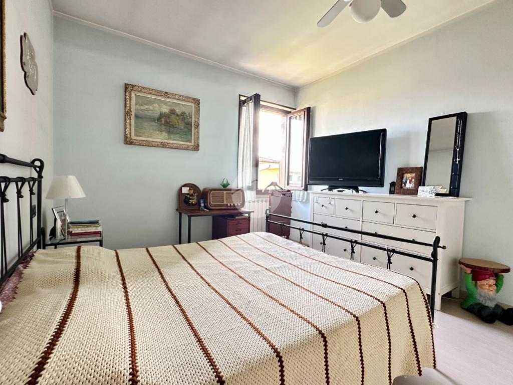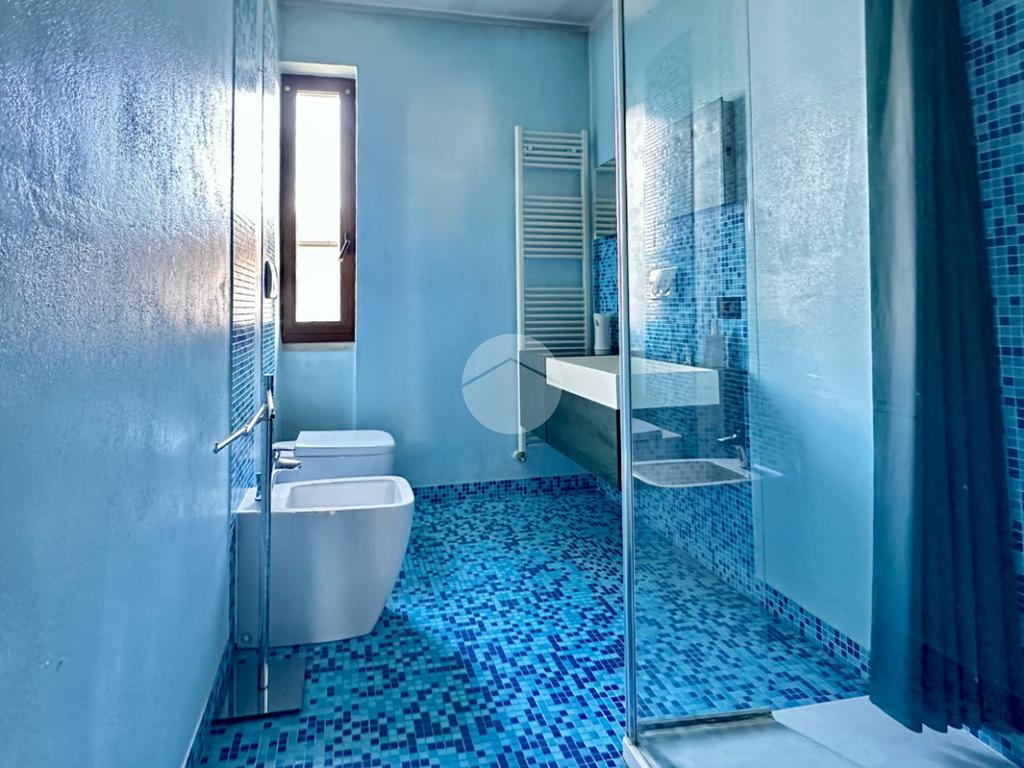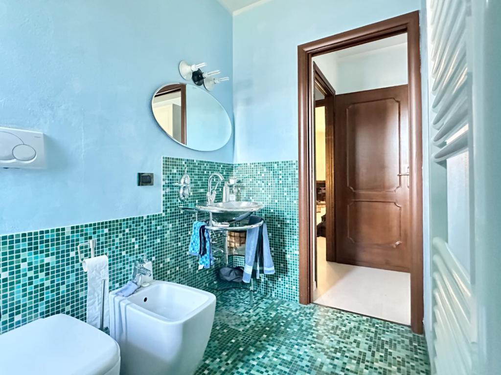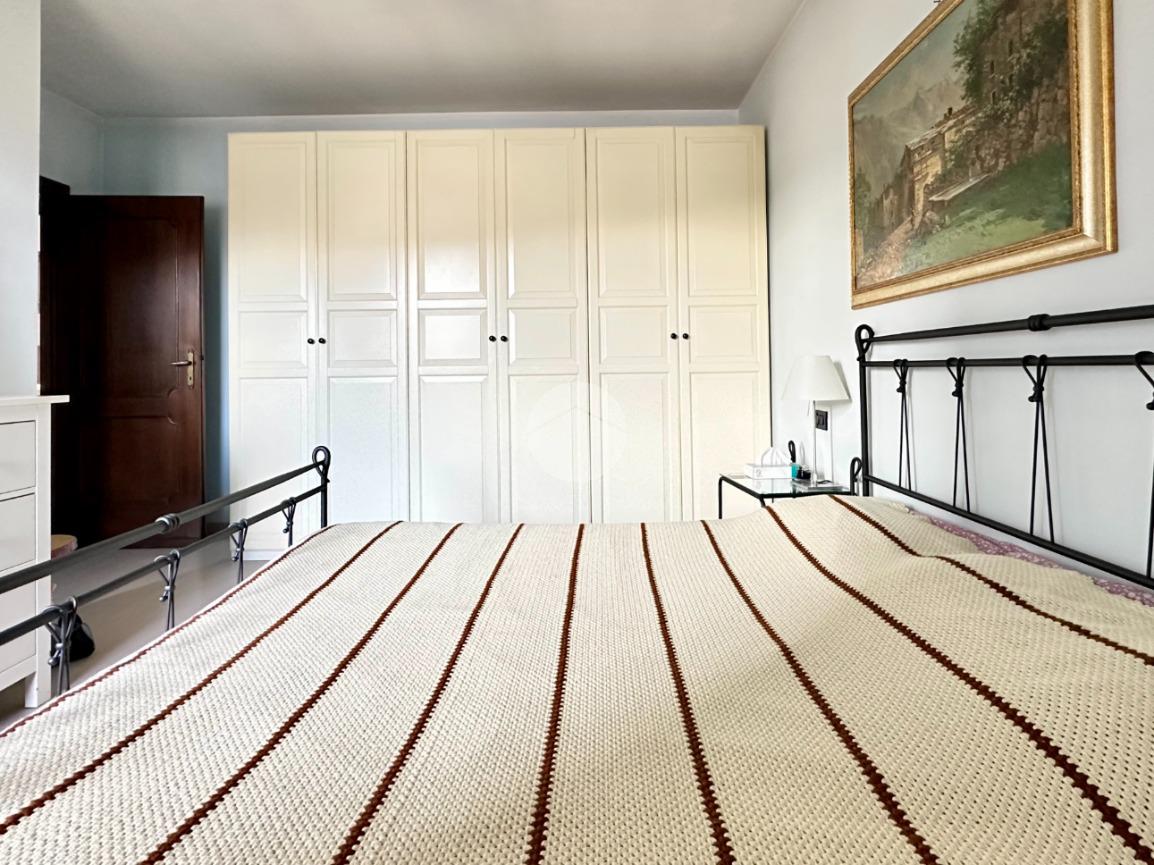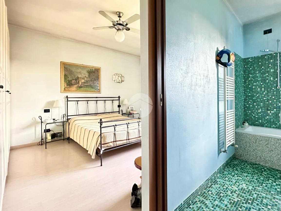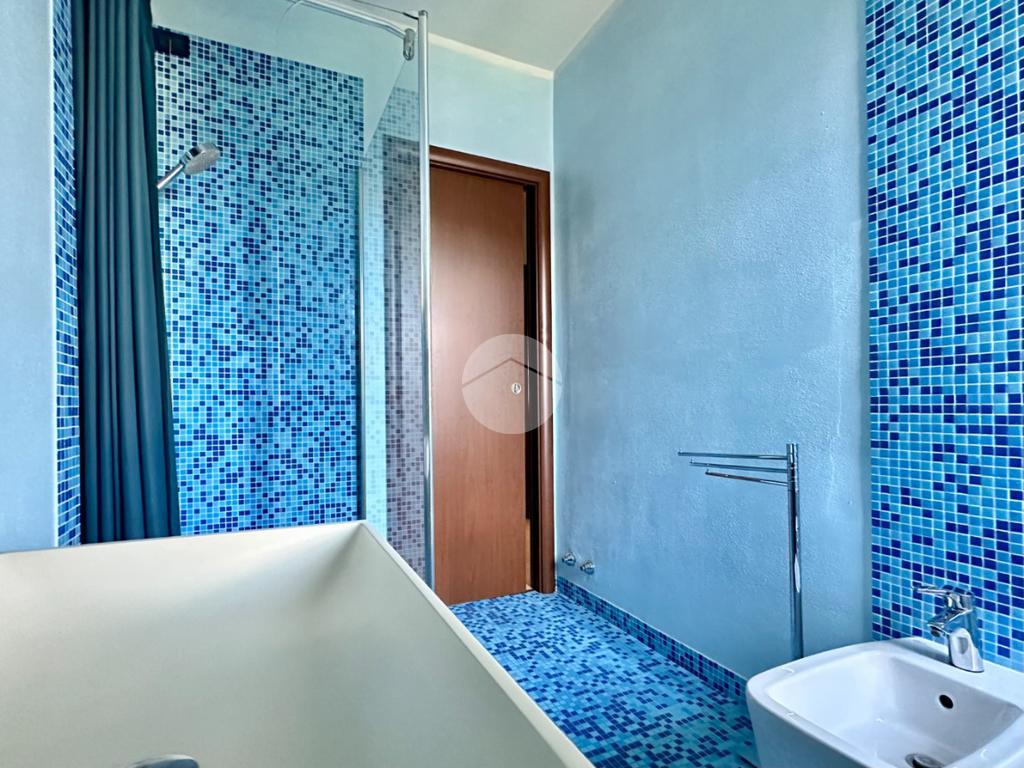 La zona notte è fruibile da un disimpegno cieco con predisposizione per l'aria condizionata. Il bagno di servizio, centrale rispetto alle due camere ai lati, è stato recentemente ristrutturato. Rifinito in elegante bisazza azzurra, ospita una comoda doccia walk-in. La camera padronale è di buone dimensioni ed è impreziosita da un bagno dedicato. Ristrutturato anch'esso, differisce dall'altro servizio per il colore verde dei mosaici e per la presenza della comoda vasca da bagno. La seconda camera è matrimoniale.