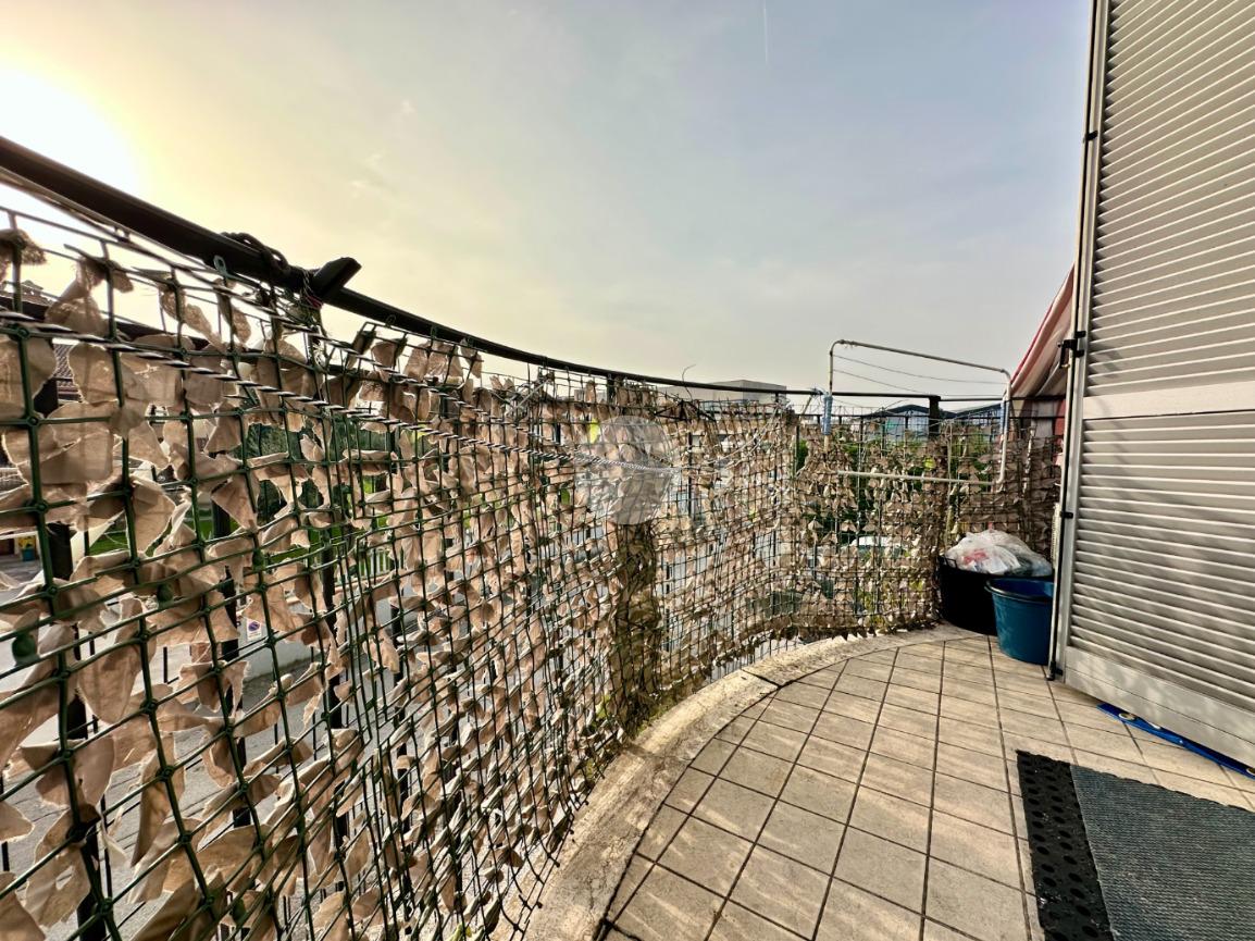 In un contesto condominiale di più unità abitative, la soluzione condivide con gli altri appartamenti la corte condominiale d'ingresso.