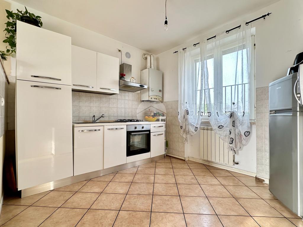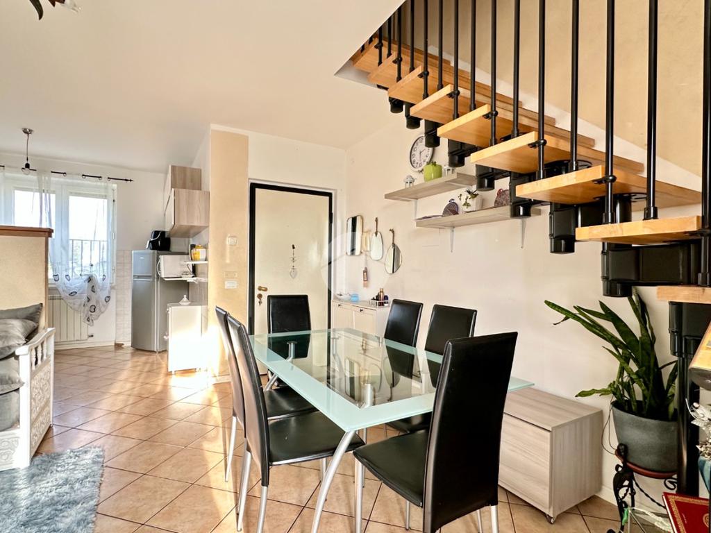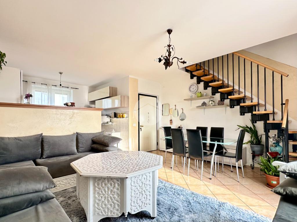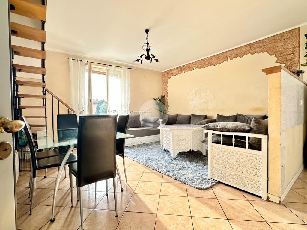 Adiacente alla città, vicino ad utili servizi, proponiamo appartamento trilocale su due livelli (piano primo e secondo), corte esclusiva e box al piano interrato.