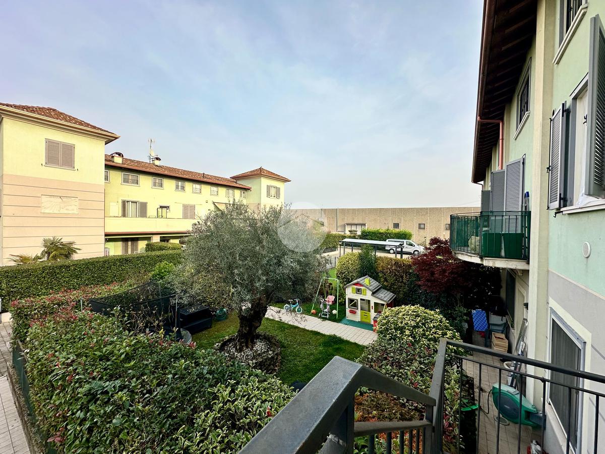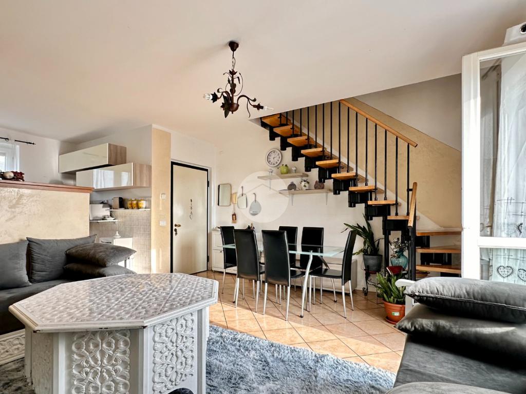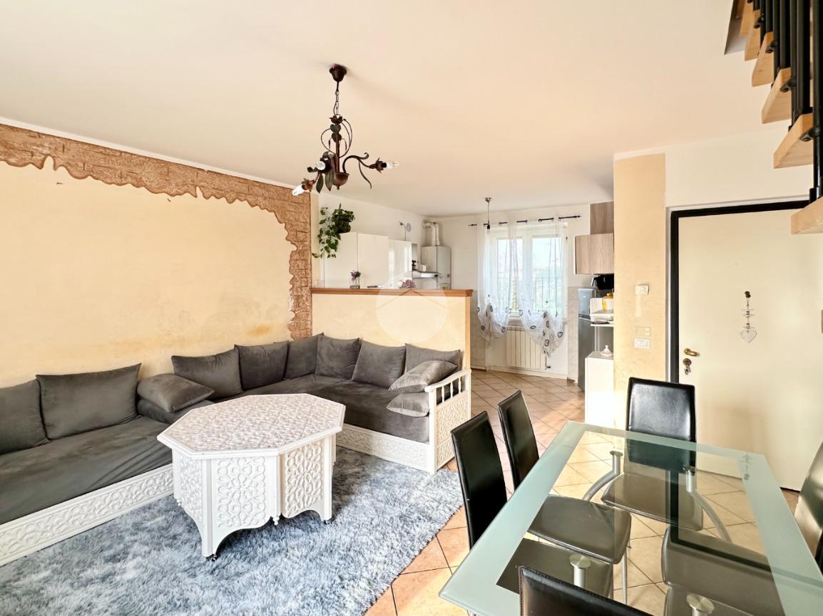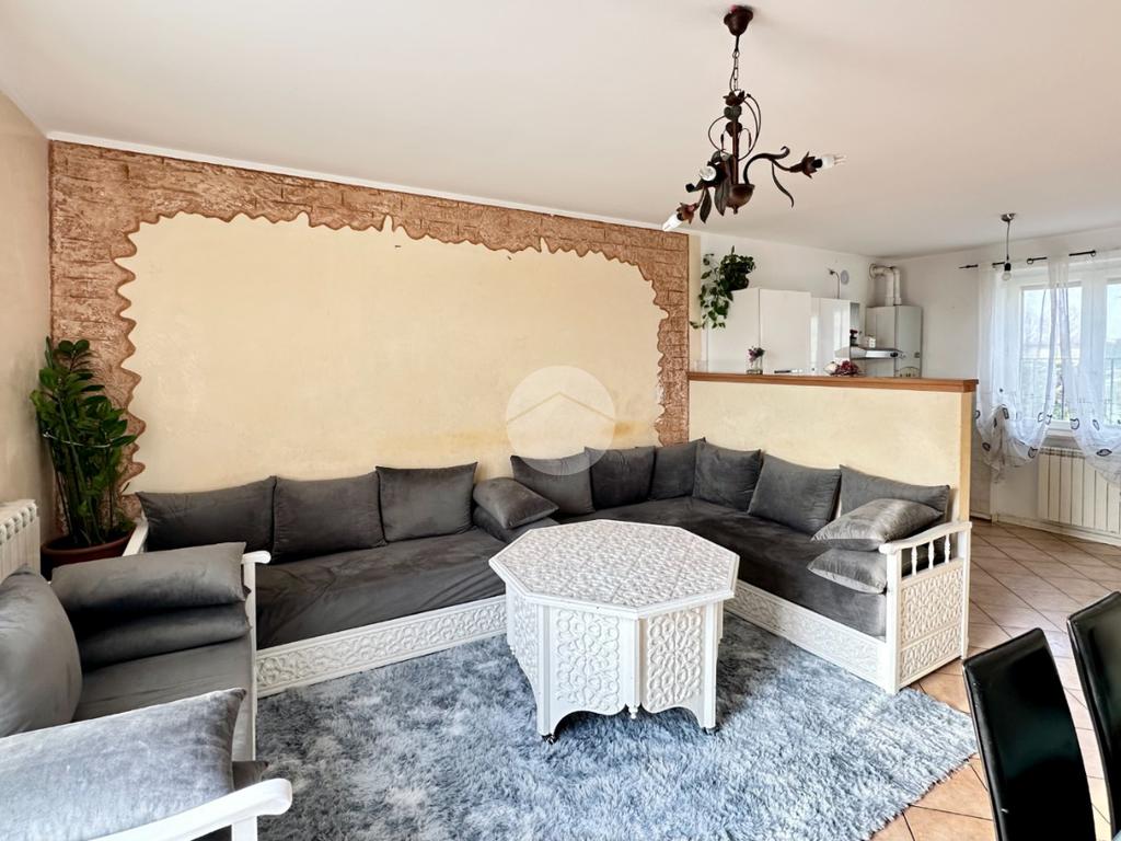 Adiacente alla città, vicino ad utili servizi, proponiamo appartamento trilocale su due livelli (piano primo e secondo), corte esclusiva e box al piano interrato.
