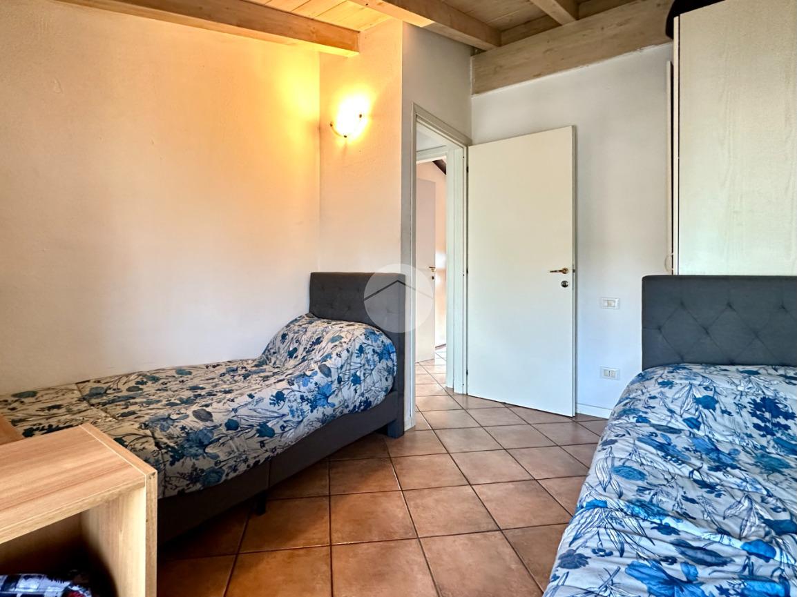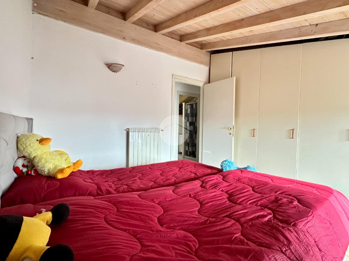 La zona notte al secondo piano è raggiungibile attraverso una elegante scala a giorno. Il disimpegno è cieco e attrezzato dall'impianto di aria condizionata. Il bagno con doccia è finestrato e completo di attacchi per la lavanderia. Completano il piano le due ampie camere da letto, matrimoniale e cameretta.