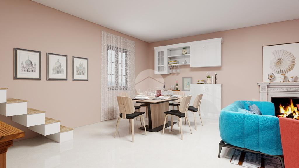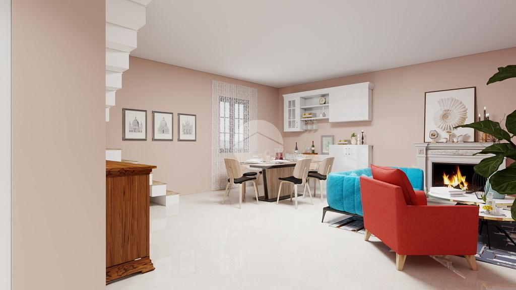 In contesto di corte, proponiamo soluzione terra-cielo al rustico con box auto di proprietà.